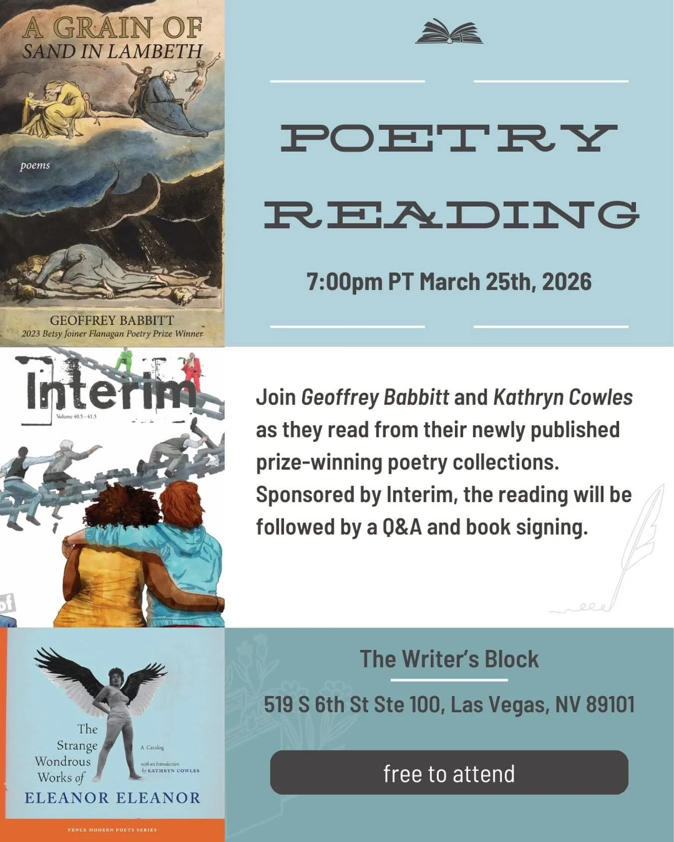 Interim Magazine and the UNLV Creative Writing Program host Geoffrey Babbitt & Kathryn Cowles